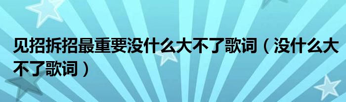 大家好,小联来为大家解答以上的问题。见招拆招最重要没什么大不了歌词,没什么大不了歌词这个很多人还不知道,现在让我们一起来看看吧!