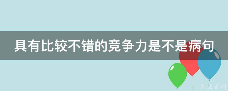 具有比较不错的竞争力不是病句。竞争力是对象在竞争中显示的能力。因此它是一种随着竞争变化着的通过竞争而体现的能力。竞争力包含在对象的现在,但它是对象未来可以展示的能力。要测定竞争力需要确定一个测定目标时间。