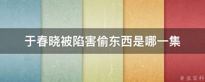最佳答案于春晓被陷害偷东西是第1集,于春晓是电视剧《小两口》里面的人物,在《小两口》第1集中,于春晓被误会偷表,受到温迪的冤枉。《小两口》由郑晓龙担任总导演,蓝志伟执导,费明、杨丝丝担纲编剧。贾乃亮、吴樾、韩彩英等人主演。该剧讲述了两种类型的婚姻为80后们打造一本完美的恋爱兵法。