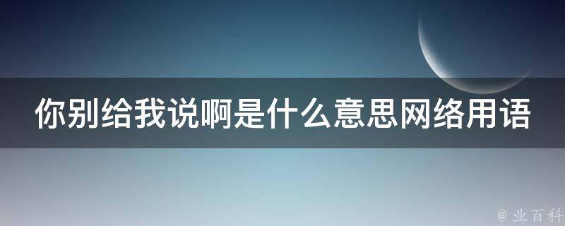 你别给我说啊的意思是停止对我说话或者放弃向我传达某种信息。网络用语是指从网络中产生或应用于网络交流的一种语言,包括中英文字母、标点、符号、拼音、图标(图片)和文字等多种组合。这种组合,往往在特定的网络媒介传播中表达特殊的意义。