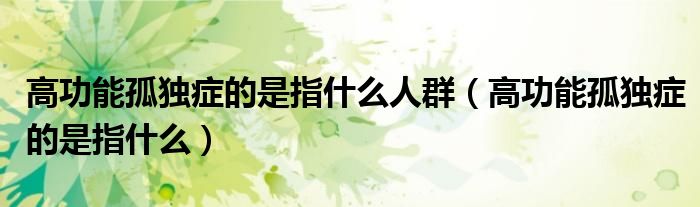 大家好,乐天来为大家解答以下的问题,高功能孤独症的是指什么人群,高功能孤独症的是指什么很多人还不知道,现在让我们一起来看看吧!