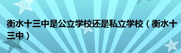 大家好,小联来为大家解答以上的问题。衡水十三中是公立学校还是私立学校,衡水十三中这个很多人还不知道,现在让我们一起来看看吧!