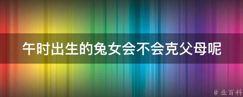 午时出生的兔女不会克父母,兄弟有二、三,早年得志,命好子女多,志气独超群,有威人敬服,随处亦传闻。午时出生的女性长得清新靓丽,很漂亮、很有文采,深得异性朋友的喜欢,恋爱方式不善言词,期待喜欢的对方先为自己打开心扉。
