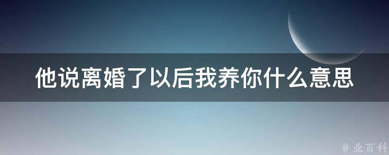 他说离婚了以后我养你意思是你如果感情不顺利到了离婚的地步,以后我养你,他是为了表达对这段关系的认可程度,或者是简单来说就是想说我爱你而已,他会有一种使命感,觉得这样可以让自己散发着男性的魅力。