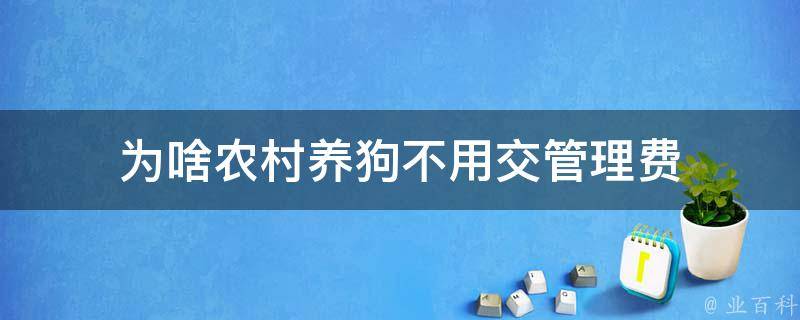 3、农村地区对养狗的管理相对宽松,没有强制要求缴纳管理费。