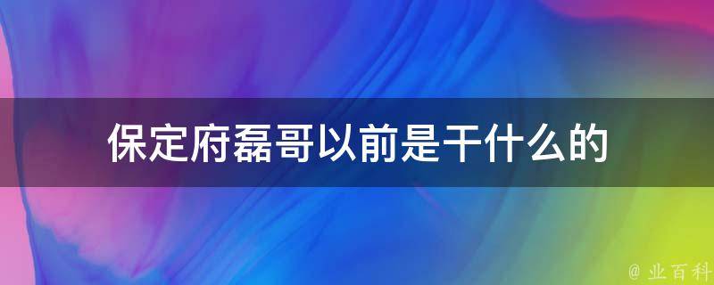 保定府磊哥以前是农民。保定府磊哥原名郑大磊,这是他在快手上的一个昵称,以前是农民,是靠自己的双手和头脑成功的商人,最初火遍快手也是凭借这个昵称进入大众眼里的,并且被大家熟知,成为有爱心、有责任感的大网红。