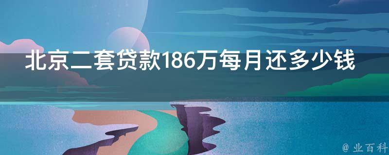 北京二套贷款186万每月还多少钱,需要视情况而定。北京地区二套房首付款比例不低于60%,贷款利率不得低于基准利率的1.1倍。假设贷款年限为20年,基准年利率为4.9%,那么每月需要还9793.03元。