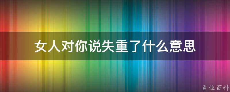 女人对你说失重了的意思她感到迷失,或者失去了方向。这种表达可能暗示着她在情感、心理或生活方面经历了一些困扰或挑战,导致她感到无法掌控自己的情感或生活。在这种情况下,她可能希望得到你的支持和理解,帮助她重新找到方向和平衡。