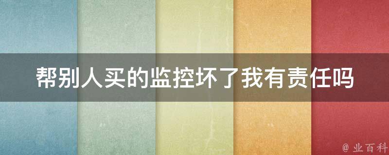 视情况而定。如果是帮别人购买监控设备,并且在购买时没有与对方签订任何协议或合同,那么通常不需要承担监控设备损坏的责任。如果在购买时与对方有明确的协议或合同,规定了自己需要承担的责任和义务,那么则可能需要根据合同条款来确定责任。
