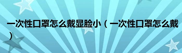 大家好,我是小科,我来为大家解答以上问题。一次性口罩怎么戴显脸小,一次性口罩怎么戴很多人还不知道,现在让我们一起来看看吧!