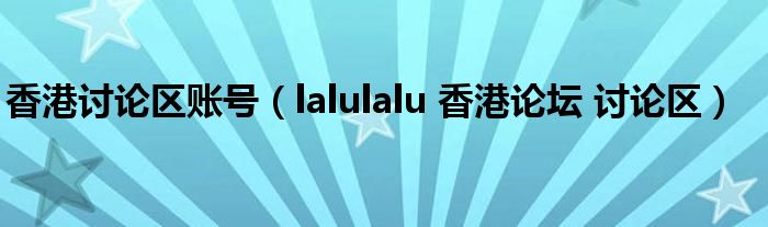 香港讨论区账号(lalulalu 香港论坛 讨论区)