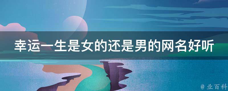 幸运一生网名男的和女的用都好听。幸运一生是一个寓意美好的网名,可以表达人们希望自己能够幸运一辈子的心愿。同时,这个网名也可以被视为一个积极向上的网名,能够激励人们积极面对生活中的挑战和困难。无论男女,都可以使用这个网名来表达自己的追求和期望。