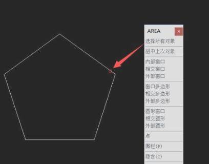 将弹出如图所示的“弹出式菜单”,从中选择“所选择的对象”项,并选中相应的图形,即可在命令提示符界面计算出当前图形面积。