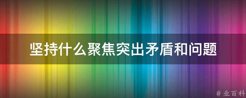 坚持问题导向聚焦突出矛盾和问题。在工作中,要坚持问题导向,及时发现和解决问题。要深入实际、深入群众,了解群众的诉求和期望,切实解决群众最关心、最直接、最现实的问题。同时,要聚焦突出矛盾,找准问题的症结所在,采取有针对性的措施加以解决。