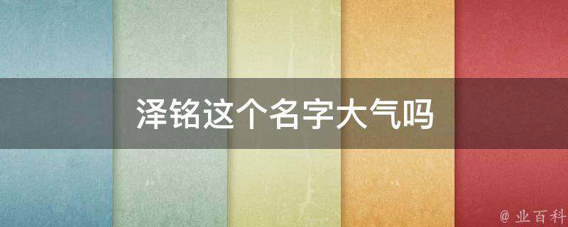 最佳答案泽铭这个名字大气。泽字本义是指水或水草积聚的低洼的地方,后引申指土壤中的水分。又引申指雨露,因为雨水能滋养万物,由此引申出恩泽、恩惠,也可以特指俸禄。泽字用作人名有光辉灿烂、温柔敦厚的寓意。铭指在器物上刻文,引申为刻在器物上的文字。铭字用作人名有博闻强记、才华横溢、杰出、大气...