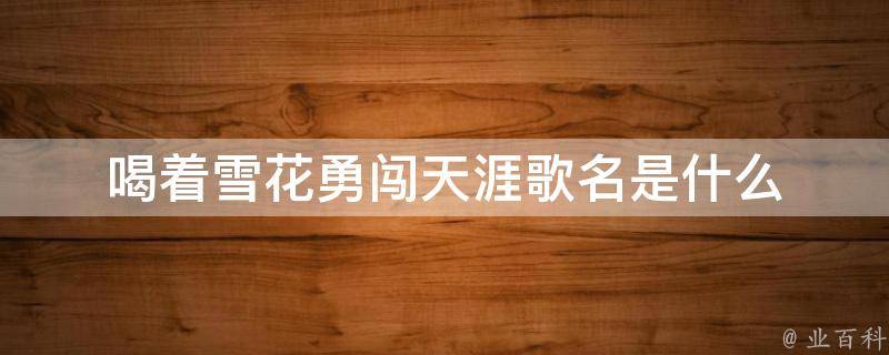 喝着雪花勇闯天涯歌名就是《喝着雪花勇闯天涯》。歌词节选:我喝着雪花闯天涯,无惧那风沙,我伸手摘了那晚霞,山河开红花,我喝着雪花闯天涯,醉了也潇洒,这人间天大地也大,风大雨也大,野草任风刮呀刮,枯了一春夏,小河流水哗啦啦,流往别人家。