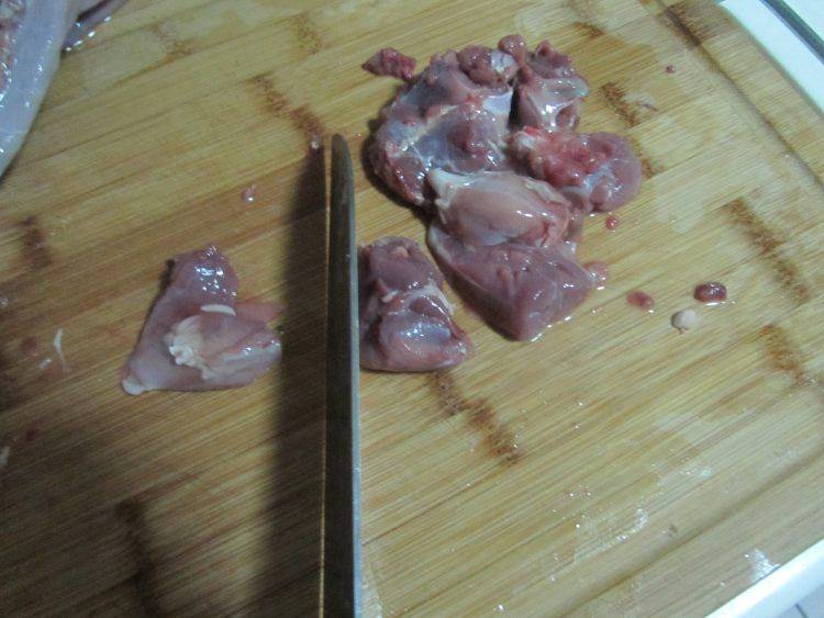 2、将泡好的野兔拿出解刀去骨。