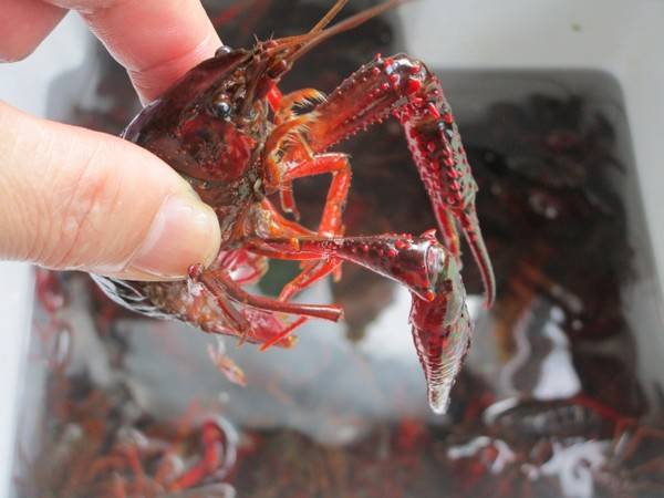 2、把小龙虾抓起,把尾部中间的肠线抽出,抽的时候用手左右捏一下,即可很易抽出。