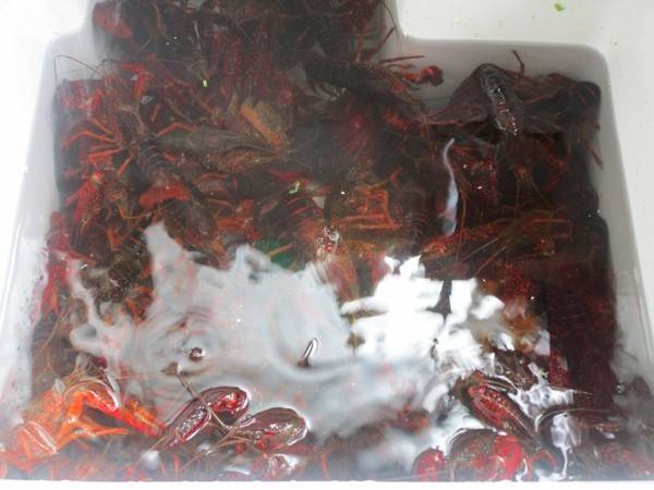 1、先把小龙虾放入水斗里,注入清水,等浑浊了再换清水,反复几次至水清为止。