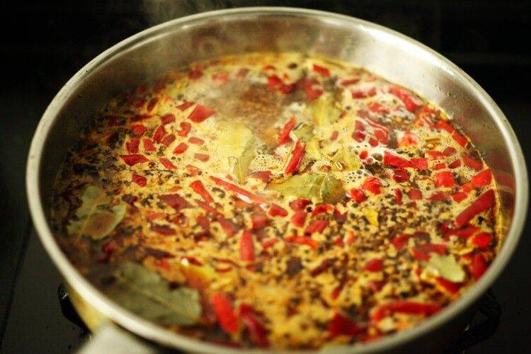 2、加入香料、辣椒、花椒。