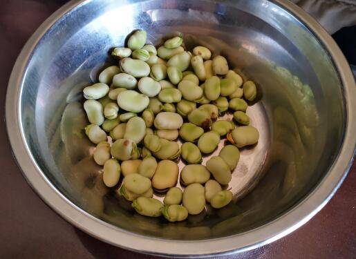 1、嫩生生的胡豆剥去皮。