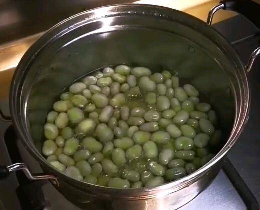2、锅中放水,水开后放入胡豆煮熟。