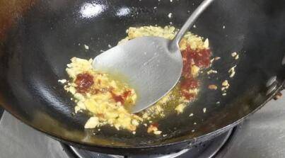 热油,加入大蒜和辣椒酱翻炒一下。
