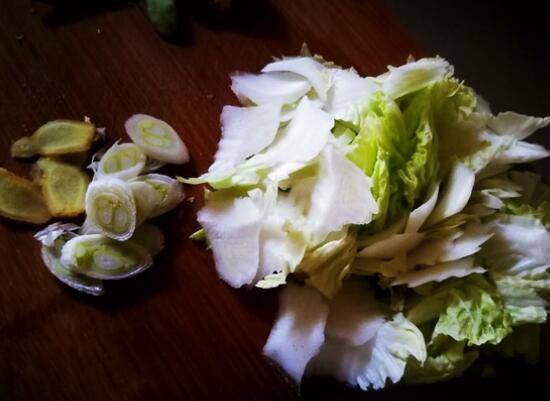 用料:黑木耳30克、大白菜300克、葱20克、姜20克、陈醋2勺、生抽1勺、盐适量。