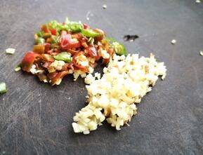 辣椒、姜、芹菜、牛肉剁碎,加入葱碎、胡椒面、麻椒油、花椒面、葱根据个人口味。