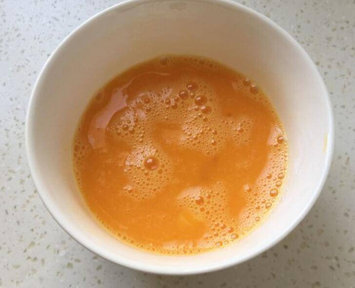 2.鸡蛋加1克盐打散。