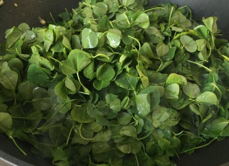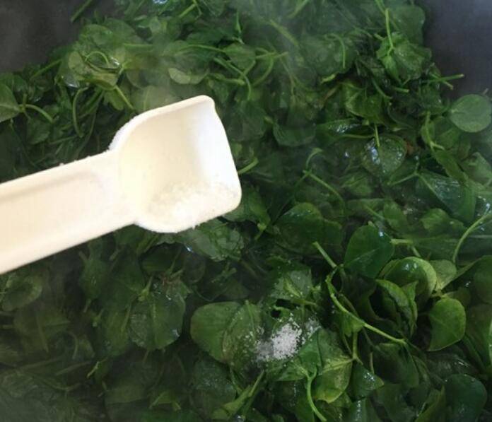 5.热锅热油放入金花菜。