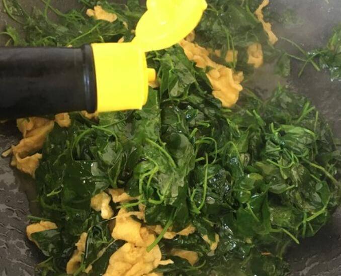 用料:金花菜300克、鸡蛋2个、盐3克、海鲜酱油10毫升、白酒几滴。