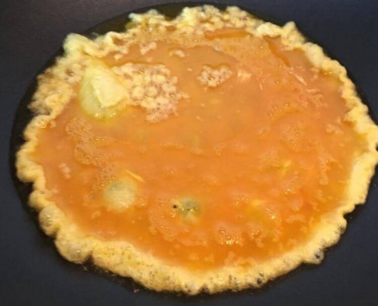 3.热锅热油放入蛋液。