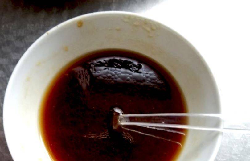 4、将适量糖、生抽、香醋、芝麻油放小碗中,用叉子或蛋抽搅打到糖溶化,水油乳化。