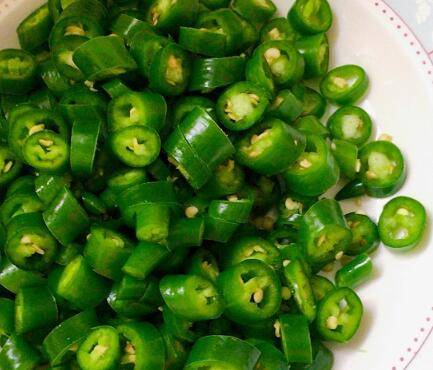 牛肉350克、线椒适量、香菜适量、食盐3克、老抽2克、生抽2克、姜2片、葱花适量。