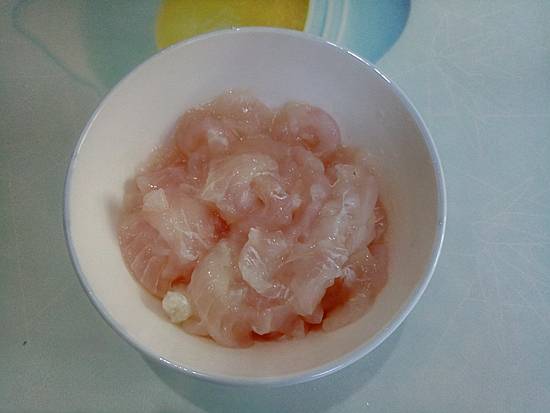 1、巴沙鱼片解冻洗净切片。加盐、料酒、油腌制一会。
