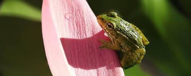 青蛙身体可分为头、躯干和四肢3部分。青蛙前脚上有四个趾,后脚上有五个趾,还有蹼。青蛙头上的两侧有两个略微鼓着的小包包。那是它的耳膜,青蛙通过它可以听到声音。青蛙的背上是绿色的,很光滑、很软,还有花纹,腹部是白色的。可以使它隐藏在草丛中,