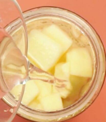 4、打成汁,将苹果汁倒入杯子里,加蜂蜜即可饮用。