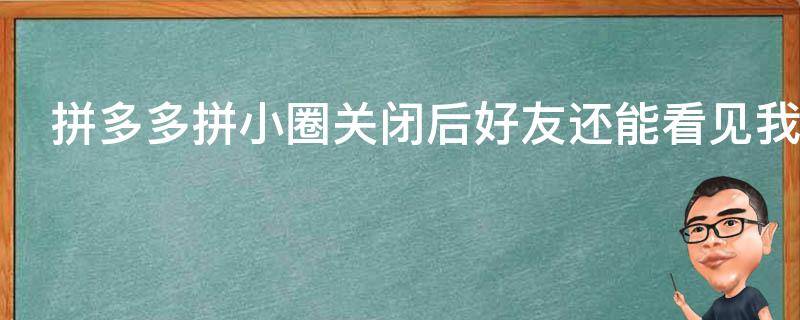 不能。关闭拼小圈别人不能就看见用户购买的东西了。想要防止自己的购买记录被公布,就要关闭掉拼多多里面的拼小圈功能,这个功能一不小心就会将用户的所有购物信息分享出去,让其他的好友看见,泄露隐私。