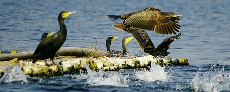 1、鸬鹚:常成群栖息于水边岩石上或水中,呈垂直站立姿势。在水中游泳时身体下沉较多,颈向上伸直,头微向上仰。栖息于河流、湖泊、池塘、水库、河口及其沼泽地带。