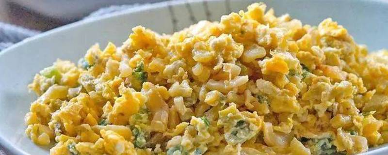 3、锅中热油倒入打散的鸡蛋炒熟盛出。