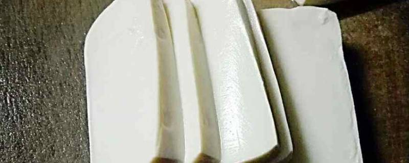 将老豆腐切成约1厘米左右的厚片。豆腐要用北豆腐,这种豆腐材质略硬,水份较少,不易破碎,更适合来煎炸。