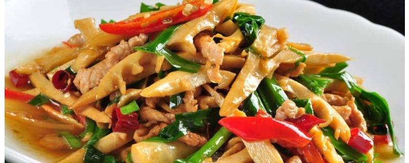 一、虎杖笋炒肉。准备食材:虎杖笋、猪里脊、青蒜、油、淀粉、料酒、酱油、盐。