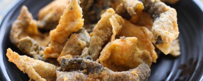 将腌制好的鱼皮裹上淀粉和蛋黄。