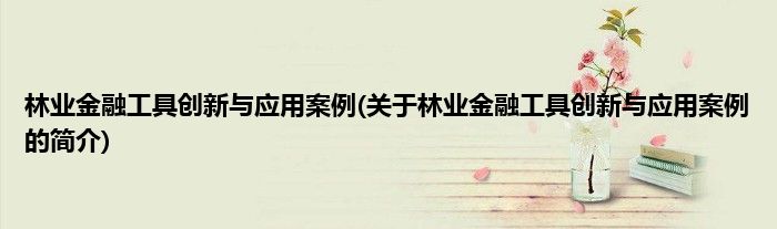 林业金融工具创新与应用案例(关于林业金融工具创新与应用案例的简介)