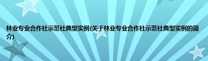 林业专业合作社示范社典型实例(关于林业专业合作社示范社典型实例的简介)