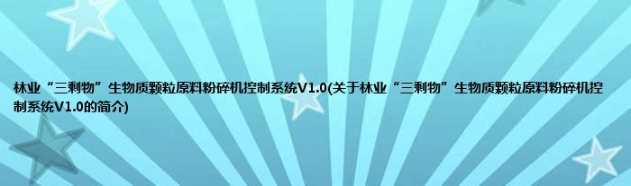 林业“三剩物”生物质颗粒原料粉碎机控制系统V1.0(关于林业“三剩物”生物质颗粒原料粉碎机控制系统V1.0的简介)