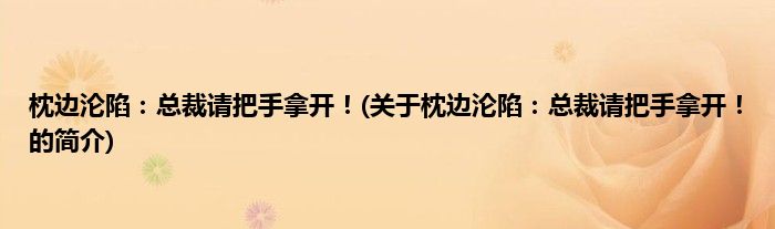 本文关于枕边沦陷:总裁请把手拿开!的简介就讲解完毕,希望对大家有所帮助。