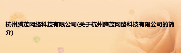 本文关于杭州腾茂网络科技有限公司的简介就讲解完毕,希望对大家有所帮助。