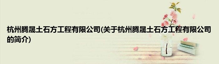 本文关于杭州腾晟土石方工程有限公司的简介就讲解完毕,希望对大家有所帮助。